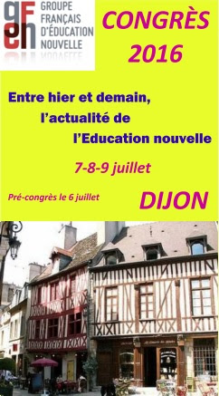 Entre hier et demain, l’actualité de l’Education nouvelle les 7-8-9 juillet 2016, DIJON
