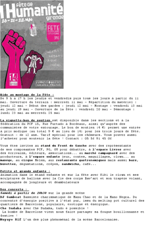 Fête de l’Humanité Gironde : 20, 21 et 22 Mai, au Parc de Courregean à Villenave d’Ornon (33)