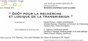 "Goût pour la recherche et logique de la transmission" : Vendredi 30 novembre 2012 à 16 H 30 dans le cadre des Foulées littéraires de Lormont (33).
