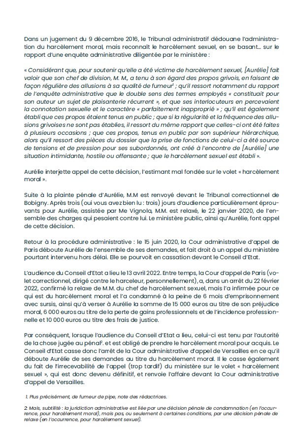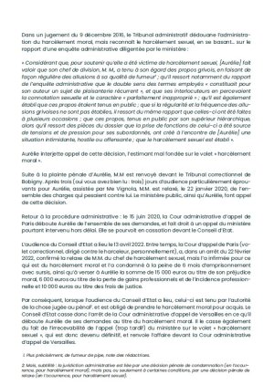 La victime se bat depuis 10 ans contre son employeur et le harceleur, tandis que ce dernier poursuit sa carrière tranquillement.