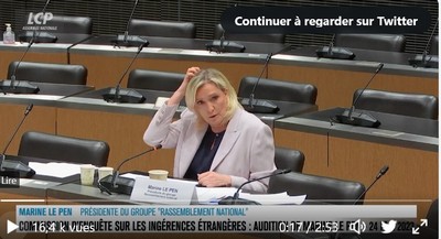 Devant la commission d’enquête sur les influences étrangères, Marine le Pen a ressorti sa ligne de défense : si elle a dû recourir à des financements russes, c’est que les banques françaises ne voulaient pas lui prêter d’argent. Seule solution : la « banque de la démocratie ». (...)