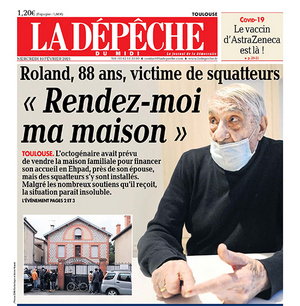 Ce fait divers, monté en épingle par La Dépêche du Midi, met en scène un homme âgé qui a mis sa maison toulousaine en vente pour, dit-il, disposer de l’argent nécessaire à son hébergement en Ehpad, où se trouve déjà sa femme, qu’il désire rejoindre. Il n’habitait plus cette maison depuis au moins deux ans (eau, gaz et électricité étaient coupés), car il louait un appartement à Albi, près de l’Ehpad en question. Or, cette maison a été investie en septembre 2020 par quatre jeunes squatteurs. Saisi par le propriétaire pour les faire expulser, le tribunal d’instance a donné raison à ce dernier le 23 octobre, mais il a aussi décidé de reporter l’expulsion des squatteurs à la fin de la trêve hivernale, décalée cette année au 1er juin. Trois mois plus tard, ledit propriétaire décide de jouer la carte des médias. Et il s’adresse au journal dans lequel il a travaillé toute sa vie comme rotativiste : La Dépêche du Midi. C’est ainsi que le principal quotidien de la région Occitanie lance le fait divers sur lequel il reviendra abondamment par la suite. (...)