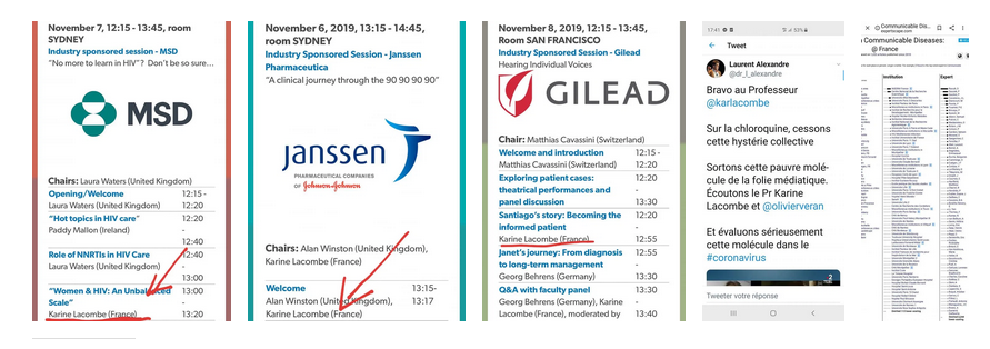 D’aucuns discréditent les travaux de l’équipe du Pr Raoult. Parmi eux la Pr Karine Lacombe dont on va poster ici les nombreux et graves conflits d’intérêts avec Big Pharma ! Il est scandaleux de laisser des professionnels de santé parler de la sorte sur les plateaux télé sans déclarer leurs conflits d’intérêts, c’est pourtant une obligation légale. (...)