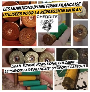 Sauf que, les munitions ramassées par terre par les protestataires iraniens, après que la police ait tiré sur la foule, comportent le logo de la firme Cheddite. Les tirs qui tuent en Iran viennent, pour certains, de France.