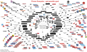 Au fil du temps, on ne peut que constater que les limitations à la concentration des médias sont de plus en plus faibles. La défense du pluralisme par le CSA semble une défense de la pluralité des milliardaires et de leur équitable répartition dans les différents médias. Et ces limitations sont circonscrites, dans leur ensemble, à la configuration classique des médias telle qu’elle existait en 1986. Certes, la TNT a été règlementée, mais quid d’Internet ? Alors que les journaux, les radios et les télévisions disposent tous et toutes d’une version numérique, dont l’audience est souvent bien supérieure à celle de la version papier, alors que se sont développés nombre de journaux en ligne « pure players », de webtélés, et de webradios, ainsi que des modes de diffusion autres que la TNT (câble, satellite, adsl, fibre, téléphonie mobile et télévision mobile), qui sont très peu réglementés ; alors qu’une partie de plus en plus considérable de la société civile s’alarme de l’accaparement des médias par un gang de milliardaires, le pouvoir politique ne semble se préoccuper que de limiter la liberté de la presse (loi sur le secret des affaires, sur les fausses nouvelles). Or c’est bien dans le monde des nouvelles technologies que se jouent, hors de toute réglementation, les recompositions capitalistiques. (...)