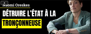 Dans son dernier ouvrage Le Grand Mythe, co-écrit avec Erik Conway, elle décortique les origines et la construction de ce qu’elle appelle le "fondamentalisme de marché", cette croyance quasi-religieuse en la capacité des marchés à résoudre tous les problèmes de société.