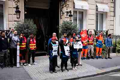 Ce 22 septembre, à Paris, des anciens employés sans papiers du groupe Hospitality se sont rassemblés devant un hôtel 5 étoiles pour dénoncer leurs conditions de travail et exiger leur régularisation.