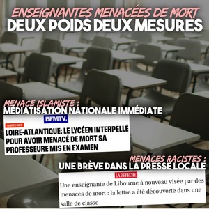 Dans les deux cas, il s’agit pourtant d’une forme de fascisme : terroriser une enseignante pour des motifs racistes ou soi-disant religieux. Mais il faut croire que pour menacer une prof, il vaut mieux être raciste que racisé… Et que les victimes du racisme ne comptent pas.