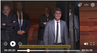"Bonjour, je suis désolé, je fais irruption sur la scène". Il est venu "encourager Valérie" avec qui il "passe beaucoup de temps ensemble en ce moment". La tête de liste l’a salué d’un "Monsieur le Premier ministre... Salut Gabriel !" avant de lui céder la parole pendant ses quelques minutes d’interview. La liste de la majorité reste distancée dans les sondages d’intention de vote. Cette intervention de Gabriel Attal est très critiquée par les oppositions.