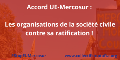 Pour le collectif national Stop Mercosur, c’est la preuve que l’opposition à cet accord, le plus nocif et le plus contesté de l’histoire européenne, s’étend au-delà des frontières et que les sociétés civiles de différents pays concernées, qui travaillent ensemble depuis de nombreuses années, partagent une même analyse et un même objecitf : faire tomber cet accord nocif. Renforçons la mobilisation contre cet accord pour bloquer sa ratification. (...)