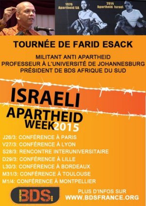 Dans le cadre de la Semaine contre l’Apartheid Israélien (IAW)*, Génération Palestine, le syndicat Solidaire Étudiant-e-s, l’association OSB IV et le Labo’ décolonial de l’Université Populaire de Bordeaux organisent la tournée du militant anti apartheid sud-africain Farid Esack sur le campus de Bordeaux.