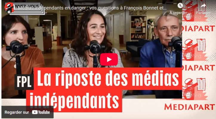 Lundi 27 octobre, en direct sur la chaîne Twitch de Mediapart, François Bonnet, cofondateur de Mediapart et président du FPL, et Charlotte Clavreul, directrice du FPL, ont répondu à toutes vos questions sur le pluralisme de la presse et l’indépendance du journalisme.