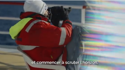 Dans sa vidéo, la photographe décrit le moment où la personne qui veille monte sur le pont, jumelles à la main, et scrute un horizon immense. Un moment où la concentration est totale et où chaque vague compte.