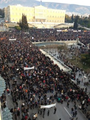 Les protestataires étaient entre 80000 et 100000, selon les sources, plusieurs centaines de milliers à l’échelle de toute la Grèce, l’une des plus grandes manifestations depuis des semaines à Athènes, à l’appel des deux grandes centrales syndicales grecques, la GSEE pour le privé et l’Adedy pour le public, ainsi que de la gauche radicale.