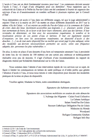 Calais, 8 associations en solidarité avec les personnes exilées, on envoyé un courrier Natacha Bouchart concernant l’accès à l’eau