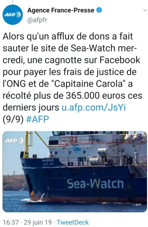 "Nous sommes fiers de notre capitaine", a écrit sur les réseaux sociaux le président de l’ONG allemande, Johannes Bayer. "Elle a exactement fait ce qu’il fallait, elle a insisté sur le droit de la mer et a mis les gens en sécurité."