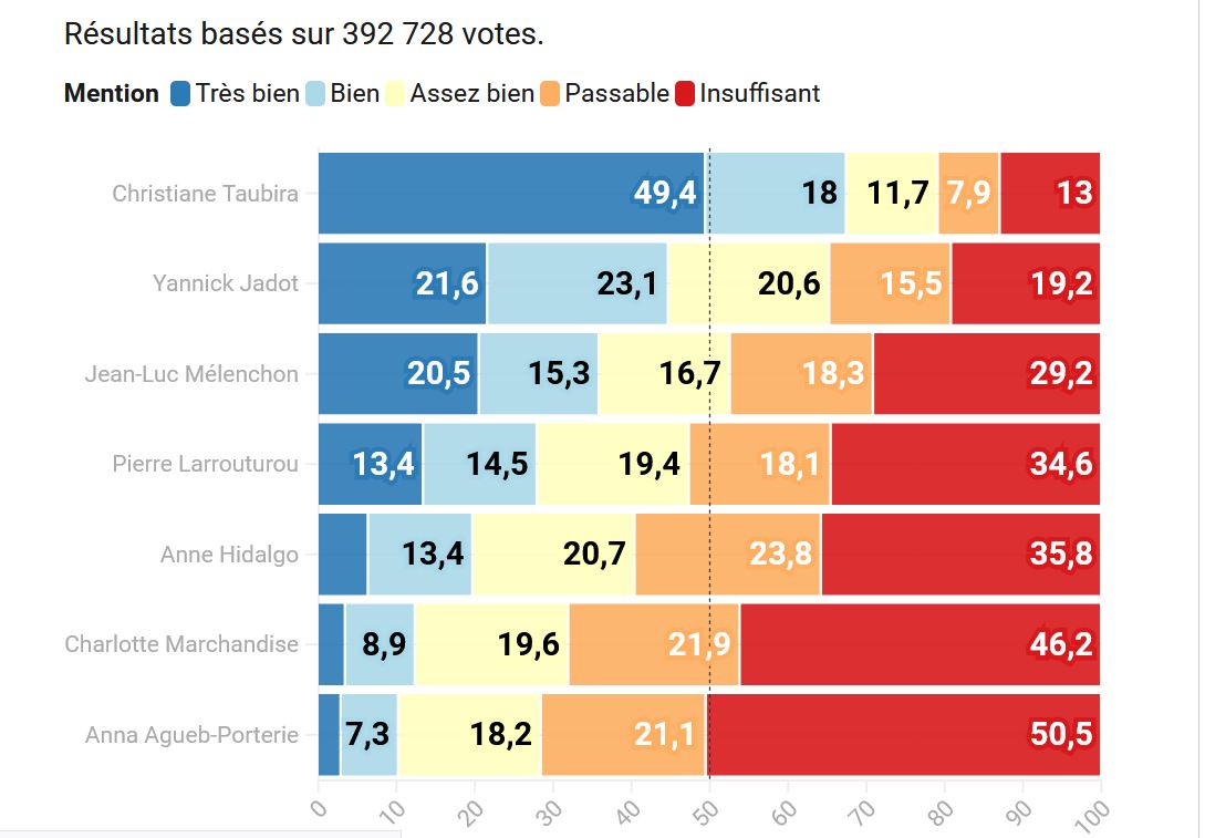 Avec 84 % de participation sur près d’un demi-million d’inscrits, l’initiative a réussi son pari démocratique mais rajoute de la confusion à gauche. Yannick Jadot, Jean-Luc Mélenchon et Anne Hidalgo ont tous rejeté l’hypothèse d’une union autour de l’ancienne ministre en vue de la présidentielle.