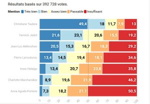 La maire de Paris Anne Hidalgo doit se contenter d’une mention « passable », derrière l’eurodéputé Pierre Larrouturou (Nouvelle Donne) mais devant la candidate 100 % citoyenne Charlotte Marchandise et la jeune Anna Agueb-Porterie. (...)