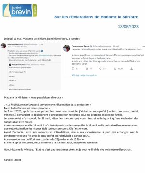 Mais le maire de Saint-Brevin-les-Pins cite aussi le "manque de soutien de l’Etat" parmi les raisons de sa démission. L’homme avait déjà interpellé l’exécutif sur sa situation et regrette de ne jamais avoir reçu de protection. Une absence de réponse également remarquée par le Sénat qui prévoit d’auditionner Yannick Morez dans la matinée du 17 mai et dans le cadre de la mission d’information sur "l’avenir de la commune et du maire en France". La démission de l’édile et plus tôt l’incendie de sa maison ont fait grand bruit et ont contraint l’Etat à réagir. La Première ministre Elisabeth Borne souhaite donc s’entretenir avec l’édile dans la semaine du 15 mai. (...)