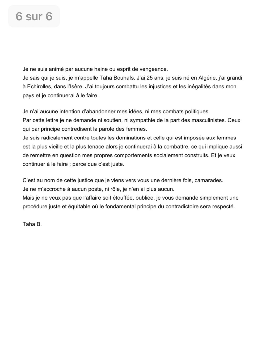 Ce qu’il écrit est pris pour argent comptant par ceux-là même qui l’ont tant insulté, avec mépris et racisme. Je n’ouvrirai pas la boite de pandore à polémiques sur chaque point de la lettre de Taha Bouhafs. 2/7