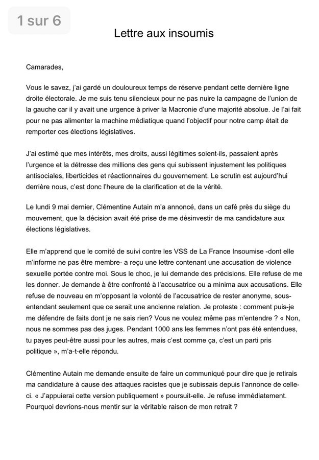 Dans une longue lettre, Taha Bouhafs demande à ce que la procédure ouverte à La France insoumise soit poursuivie et menée à son terme. https://t.co/q1JD7SSGDA