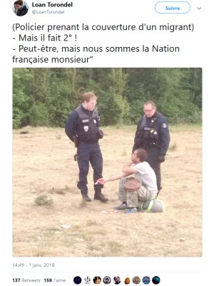 Il faisait de manière ironique référence aux propos président de la République qui avait déclaré la veille : « Nous sommes la nation française », en faisant le parallèle entre la solidarité invoquée par celui-ci et les conditions inhumaines vécues par les migrants. (...)