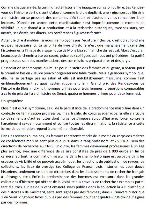 L’APPEL DE 440 HISTORIENNES FRANÇAISES : « METTONS FIN À LA DOMINATION MASCULINE EN HISTOIRE »