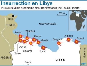 Plusieurs dirigeants libyens ont fait défection. Le ministre de la Justice Moustapha Abdel Jalil a démissionné "pour protester contre l’usage excessif de la force" contre les manifestants. C’est également le cas de diplomates en poste à l’étranger, comme l’ambassadeur en Inde, mais aussi des pilotes de deux Mirage F1, qui ont atterri à Malte en affirmant avoir fui après avoir reçu l’ordre de tirer sur les manifestants à Benghazi..(...)