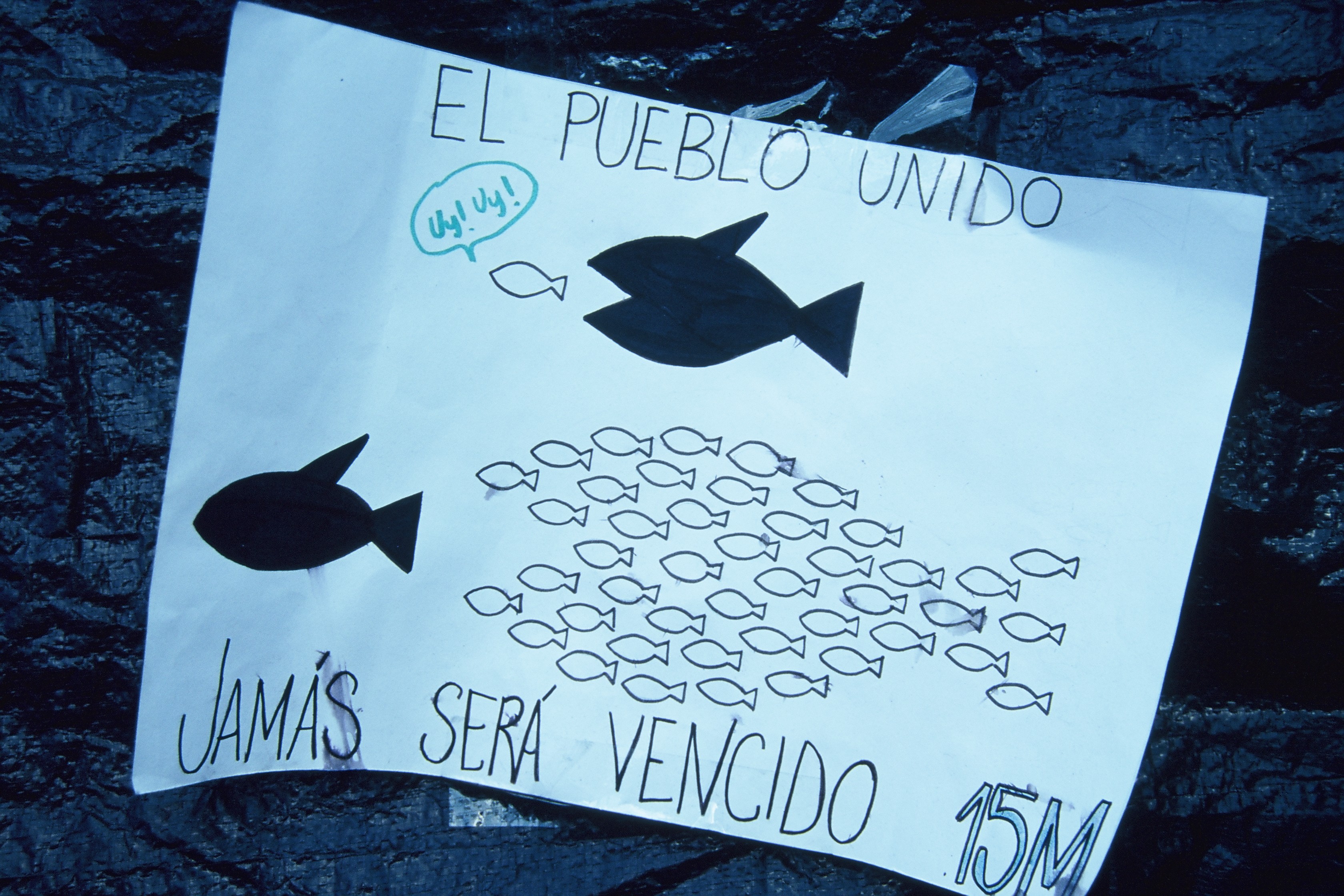 En Espagne, les jeunes ont pris l’habitude d’occuper les espaces publics. De grands rassemblements nocturnes sont régulièrement organisés pour boire et fumer dans la rue, de manière souvent excessive. C’est la pratique dite du botellón, qui est source de conflits de voisinage et de clivages générationnels. Or, les indignés de Puerta del Sol tiennent à se différencier clairement de cette forme d’occupation de l’espace public, en annonçant à l’entrée de leur campement : “No es un botellón, es la revolución !” (« Ce n’est pas un botellón, c’est la révolution ! »). D’ailleurs, ce ne sont pas que des jeunes, même si ces derniers sont fortement impliqués dans le mouvement. On retrouve une grande diversité générationnelle, comme c’est souvent le cas dans les villes espagnoles à l’occasion d’événements festifs. Mais là, il n’est pas tellement question de faire la fête, comme l’exprime cette jeune femme à l’assemblée populaire de Madrid, le dimanche 29 mai, en s’opposant à la proposition d’organiser une manifestation festive au moment de lever le camp : « On n’a rien à célébrer, on est vraiment dans la merde, la seule manière de continuer c’est de lutter… Mais qu’est-ce qu’on pourrait bien fêter ? ».(...)