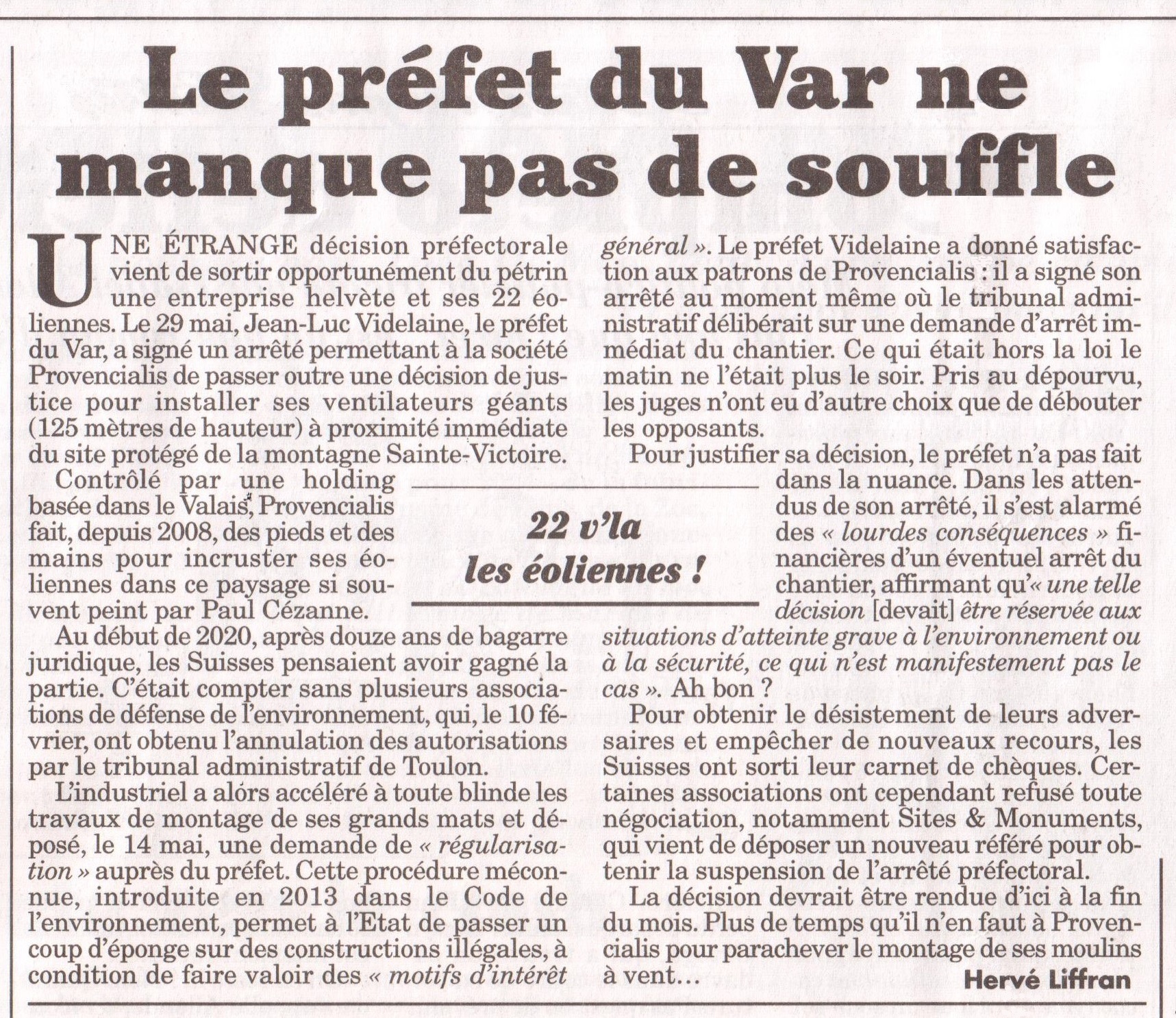 Ce projet a été élaboré à partir d’un régime obsolète, celui antérieur au classement, en 2011, des éoliennes parmi les installations susceptibles de porter atteinte à l’environnement (ICPE). Ce régime n’offre ainsi aucune des garanties attendues en un lieu si sensible (aucune simulation visuelle de l’insertion paysagère des éoliennes n’a notamment été réalisée). Le tribunal administratif de Toulon a heureusement reconnu, le 10 février 2020, que le projet relevait en réalité du régime des ICPE, faute d’avoir respecté les conditions légales du rattachement au régime antérieur. Mais, souhaitant prendre les défenseurs du patrimoine de vitesse en rendant ses travaux irréversibles, le promoteur poursuit son chantier, sur lequel un ouvrier a trouvé la mort le 11 mars 2020. (...)