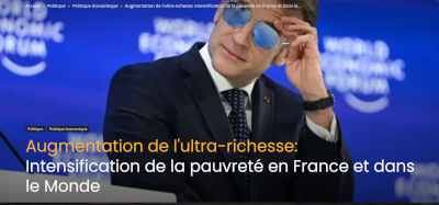 Alors que les puissants du monde se réunissent à Davos pour le Forum Économique Mondial (WEF), Oxfam France publie son dernier rapport : en 2025, la fortune des milliardaires dans le monde a bondi de plus de 16 % en 2025, trois fois plus vite que les cinq années précédentes, les 53 milliardaires français sont désormais plus riches que plus de 32 millions de personnes réunies, soit près de la moitié de la population, et le taux de pauvreté en France atteint le taux record de 15,4% de la population.