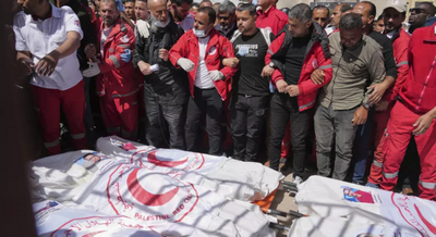 « Une expérience choquante pour nous », de voir ces secouristes « toujours dans leurs uniformes, avec leurs gants, tués alors qu’ils tentaient de sauver des vies », a raconté le responsable du Bureau des opérations humanitaires de l’ONU (Ocha) dans les territoires palestiniens. « Les ambulances ont été touchées une par une », a-t-il détaillé, décrivant les véhicules détruits à côté de cette « fosse commune ». (...)