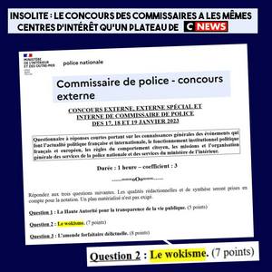 Entre deux questions administratives et procédurales, le « wokisme », un concept forgé par la droite des États-Unis à partir du mot « woke », « éveillé » et recyclé pour dénoncer la gauche mais sans jamais le définir, par les chaînes de télévision d’extrême droite en France. Absolument personne en France ne s’est jamais revendiqué « wokiste » et ce concept n’a aucune validité scientifique, mais le il figure dans le concours des futurs dirigeants de la police.