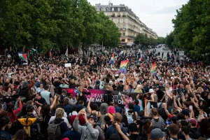 À 21 h 30, des milliers de personnes étaient réunies place de la République à Paris, à l’appel des partis du Nouveau Front populaire. © NnoMan Cadoret / Reporterre