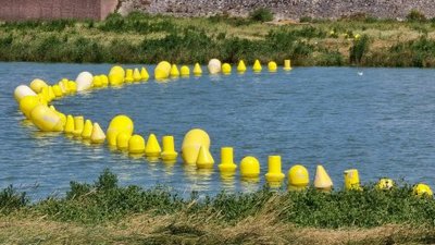 :-) La lignée de bouées qui traverse le fleuve de part en part, désormais échouée sur le rivage, a été sectionnée à l’aide d’un engin de type disqueuse, révèle France 3. (...)