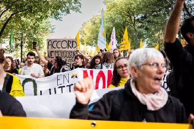 De la foule, s’élèvent des pancartes « Sauvons les paysan(ne)s et le vivant », « Mercosur mort à coup sûr » ou encore « Libre circulation, pas libre-échange ». La mobilisation, organisée par la Confédération paysanne, fait suite à l’accélération du calendrier : le traité a été validé le 3 septembre par la Commission européenne, mais il doit encore être signé par les États membres, si possible avant la fin de l’année 2025.
