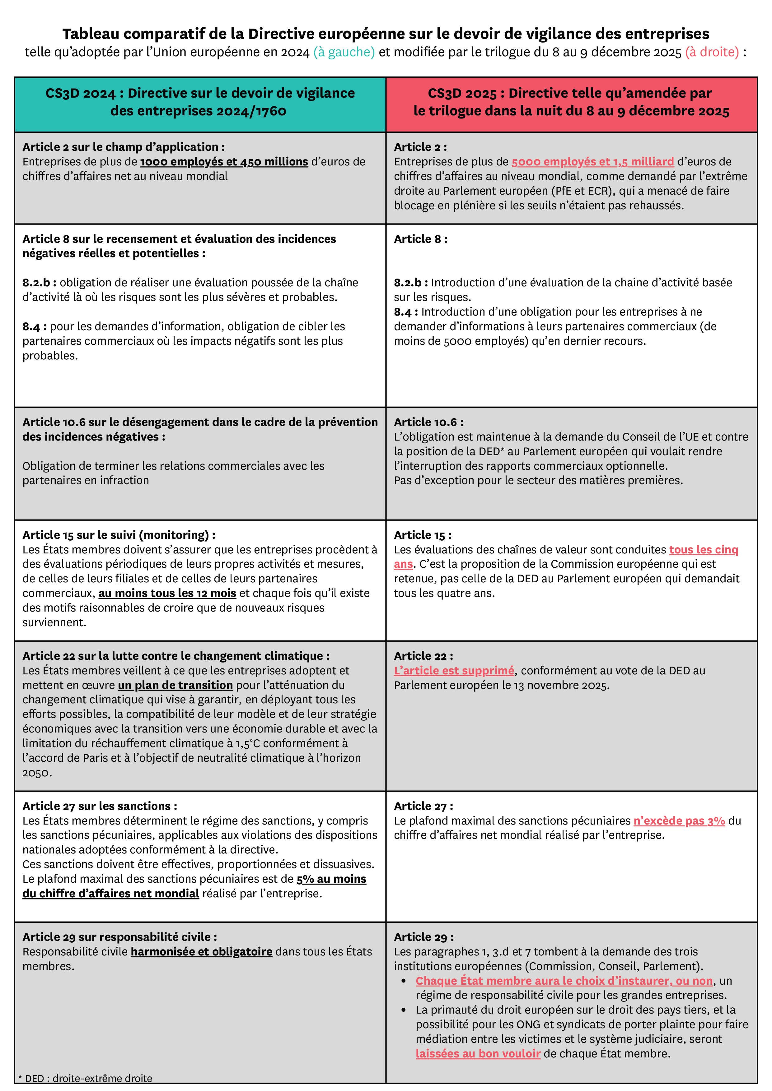 Au terme d’une négociation boycottée par les parlementaires de la droite libérale et de la gauche, les institutions européennes ont scellé à 4 heures du matin un accord qui torpille le cœur de la directive européenne sur le devoir de vigilance.