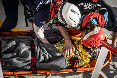 Les problématiques rencontrées sont multiples. Les personnes secourues ont souvent subi – avant même la traversée – des violences physiques et sexuelles, des privations, contracté des infections ou souffert de blessures mal soignées. Durant la traversée, elles peuvent être exposées aux brûlures causées par le mélange de carburant, d’eau salée et de soleil, à l’hypothermie, à la déshydratation ou à des risques d’écrasement dans des embarcations surchargées. En cas d’urgence extrême, comme une noyade ou une détresse cardio–respiratoire, l’équipe médicale déploie le plan d’urgence médical massif. Dans les cas les plus complexes, une évacuation sanitaire par vedette rapide ou hélicoptère peut être effectuée, en coordination avec les autorités maritimes. Dans les autres cas, une synthèse médicale est transmise aux autorités sanitaires du port de débarquement afin d’assurer la continuité des soins à terre.