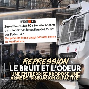 Tous les sens sont attaqués : le toucher, la vue, l’ouïe… il manquait l’odorat. Le média Reflets révèle l’invention d’armes destinées à répugner et marquer les manifestants. Une trouvaille de la firme Anatox qui « propose aux forces de l’ordre des innovations d’identification ou de dissuasion olfactives ». Ce nouvel outil de « gestion des foules » a été présenté avant les Jeux Olympiques.