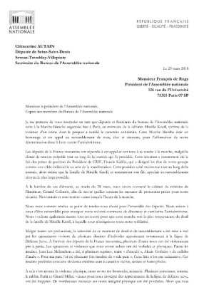 Comment est-il possible que des factions groupusculaires aient pu générer un tel climat de tension tout en restant dans la manifestation sans être interpellées ? Ma lettre à F. De Rugy suite aux violences en marge de la Marche blanche en hommage à #MireilleKnoll