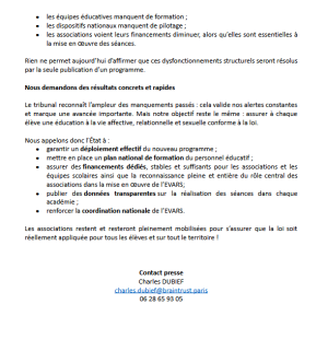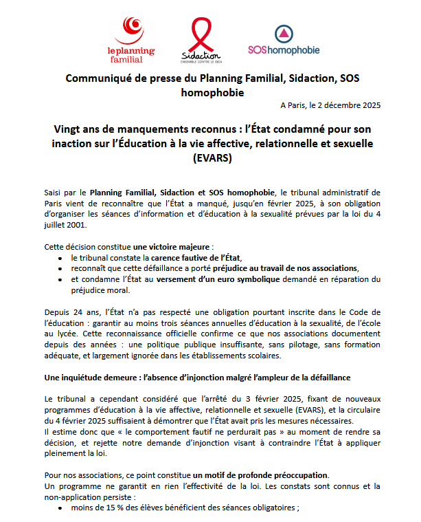 Communiqué de presse du Planning Familial, Sidaction, SOS homophobie