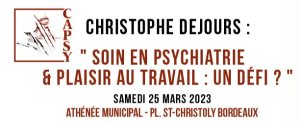 Conférence de C. DEJOURS : Soin en psychiatrie et plaisir au travail : un défi ?