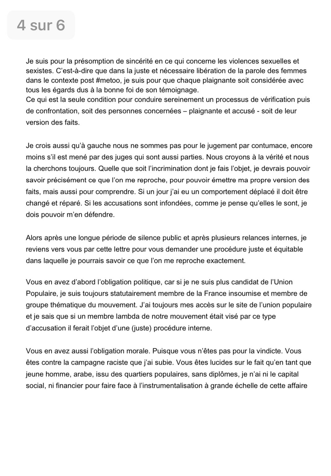 Ce qu’il écrit est pris pour argent comptant par ceux-là même qui l’ont tant insulté, avec mépris et racisme. Je n’ouvrirai pas la boite de pandore à polémiques sur chaque point de la lettre de Taha Bouhafs. 2/7