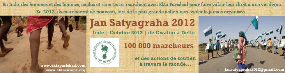 Des milliers de personnes venues de toute l’Inde ont déjà rejoint la place Mela Ground de la ville de Gwalior (Madhya Pradesh). A partir du 2 octobre ils devraient être quelques dizaines de milliers, et se mettre en route pour Jan Satyagraha, une marche d’une durée d’un mois jusqu’à Delhi pour réclamer leurs droits d’accès à la terre et aux ressources naturelles.