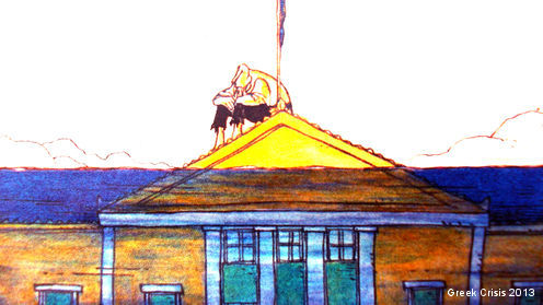 Dans la foulée de la fermeture de la télévision publique grecque, |5| on trouve parmi les conditions aux prêts, une nouvelle loi sur la fonction publique, adoptée le 18 juillet à quelques heures de la visite à Athènes du ministre des finances allemand, Wolfgang Schaüble – visite pour laquelle le centre d’Athènes s’est transformé en ‘no man’s land’ surveillé par la police. Cette loi institue le licenciement massif des fonctionnaires en pleine contradiction avec la Constitution grecque et permet le sacrifice de plusieurs milliers d’employés qui devront travailler huit mois avec un salaire réduit avant d’accepter une nouvelle proposition, sous peine d’être mis à la rue. (...)