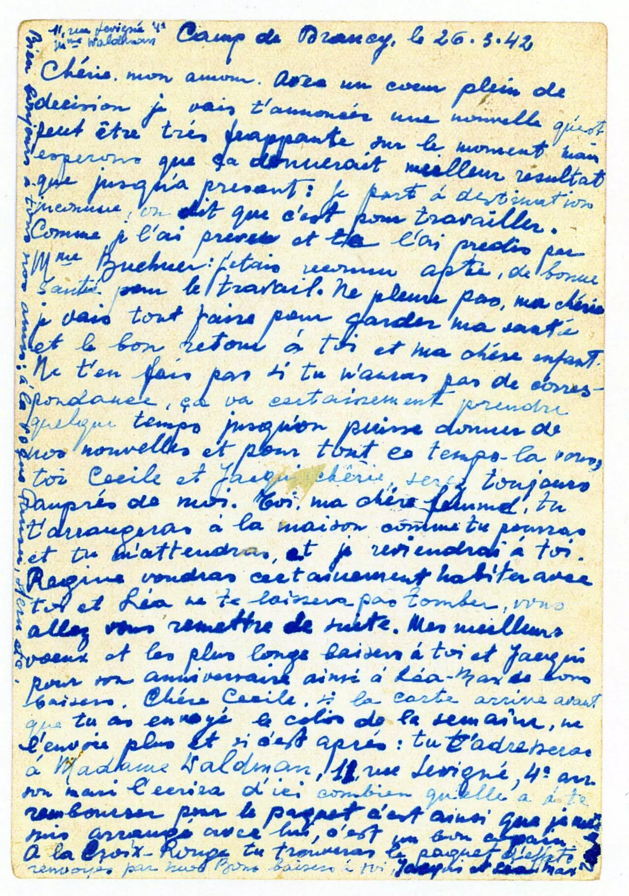 Pour commémorer ce convoi et les 80 ans de l’année 1942 durant laquelle 45 736 juifs sont déportés de France, soit plus de 60 % du total des juifs déportés de France au cours de la guerre, le Mémorial de la Shoah à Drancy consacre une exposition aux lettres d’internés intitulée "C’est demain que nous partons". (...)