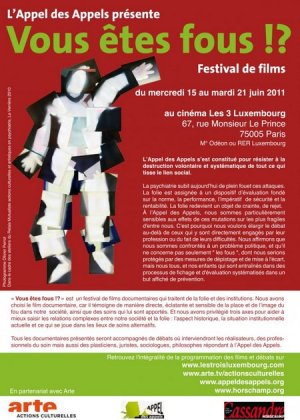 Les documentaires proposés retracent le moment fécond d’expériences innovantes montrant qu’il est possible de prendre soin de la folie et de la souffrance psychique, point de réel de toute « humanité dans l’homme ». A distance du pouvoir asilaire qui exclut, autant que de la contrainte normative des réseaux de santé mentale qui appauvrissent le vivant dans sa diversité et sa singularité -ce qu’illustrent certains documentaires- d’autres attestent de l’histoire sans cesse recommencée de ceux qui prennent soin de la folie en tant qu’elle reflète l’expérience tragique de la condition humaine et la manière dont une société la capture et la qualifie.