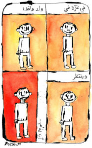 (...) Avant cette « guerre », Gaza était une sorte d’espace en quarantaine, avec une population maintenue captive et colonisée par l’habilité d’Israël à bafouer le droit international en toute impunité (2). Et cette population est sous régime de dépendance – en matière d’alimentation, d’eau, de médicaments et même de déplacements – auprès de ses colonisateurs. En cas de cessez-le-feu, Gaza demeure colonisée, fermée, sous blocus, c’est-à-dire, une prison à ciel ouvert, un camp de réfugié-e-s gigantesque.Un détail au sujet des morts toutefois est continuellement repris dans les médias dominants basés en Occident : la grande majorité des Palestinien-ne-s assassiné-e-s à Gaza sont des civils et ces sources ajoutent que parmi eux se trouve un nombre « disproportionné » de femmes et d’enfants.