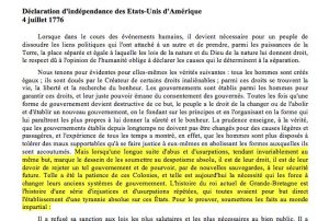 4 juillet 1776, déclaration d’Indépendance des USA.