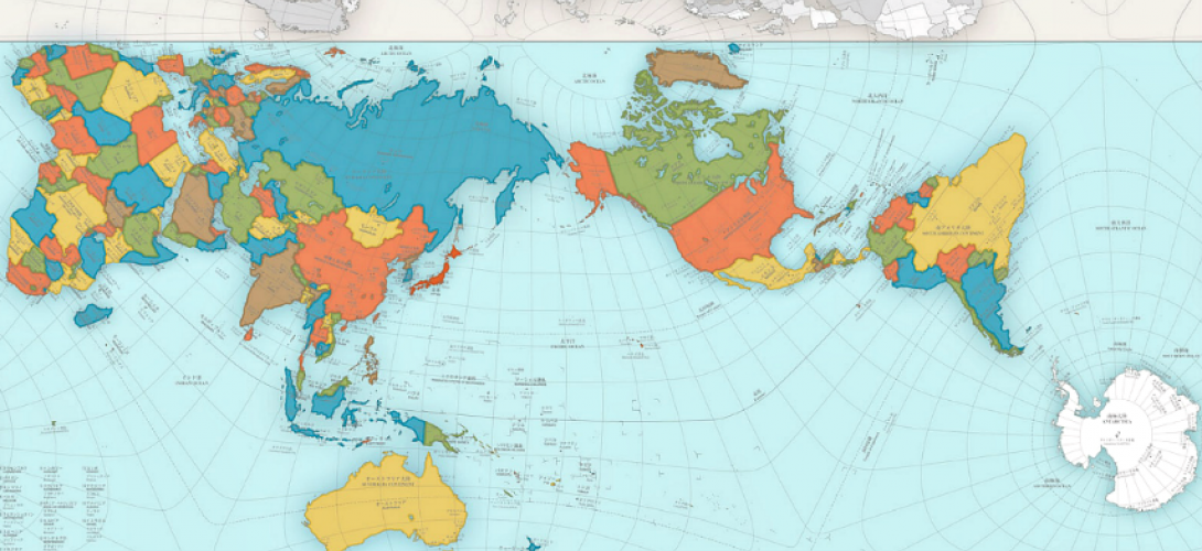 Hajime Narukawa insiste sur le fait que les changements climatiques rendent nécessaire une visualisation différente de la planète. Un des faits les plus intéressants, c’est d’inverser le rapport terre/mer. On voit un grand océan au milieu duquel surnagent des continents dont on perçoit beaucoup plus l’unité alors que dans la projection de Mercator, on a des continents distincts et entre eux un peu de flotte. (...)